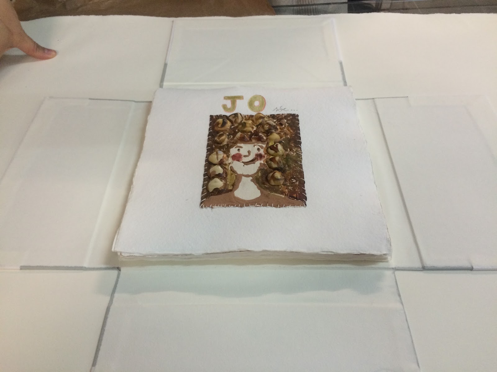 Ha realizado un libro de artista y necesitaba encuadernarlo, al ser todo hojas sueltas es un poco más difícil de unir las hojas, así que estuve haciendo pruebas hasta que dí con este cosido visto, que me lo he inventado ya que el cosido japonés necesita más margen en la parte del lomo.